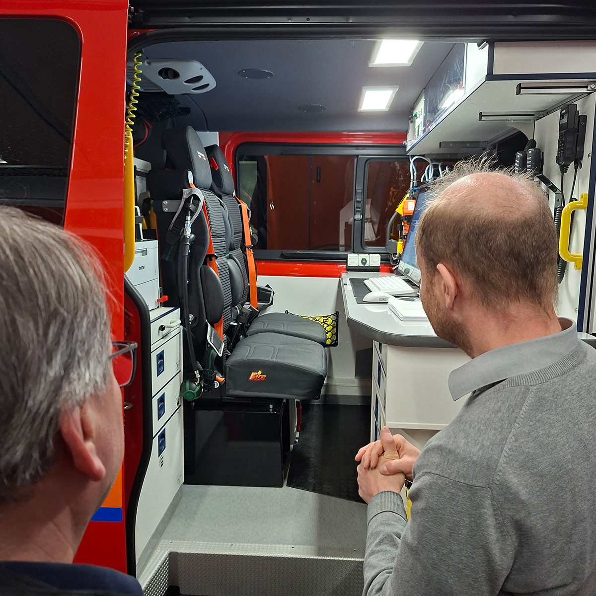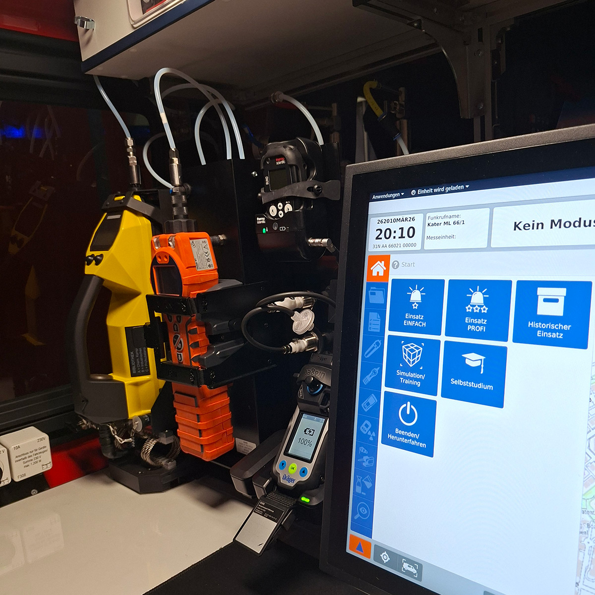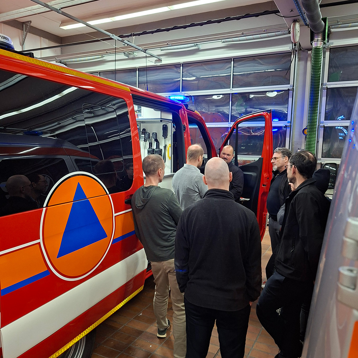 Auf dem Programm standen neben allgemeinen Informationen zur Arbeit des ABC-Zugs Land-München praktische Einblicke in die Messtechnik und Software des ABC-Erkunders, das Handling verschiedener Ausrüstungsgegenstände wie der Probennahme-Sets und erste Erfahrungswerte im Umgang mit dem brandneuen Nachfolgemodell des ABC-Erkunders.
